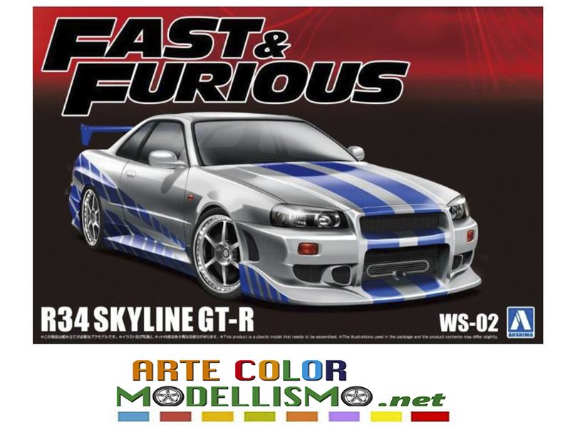 AOSHIMA ITEM 06795 FAST & FURIOUS NISSAN R34 SKYLINE GT-R 1/24 SCALE MODEL